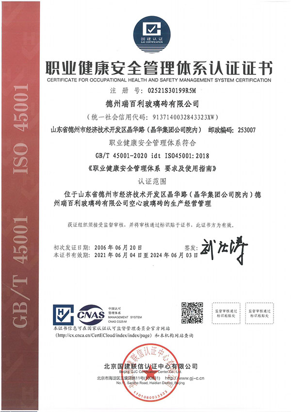 • 空心玻璃磚檢測報告